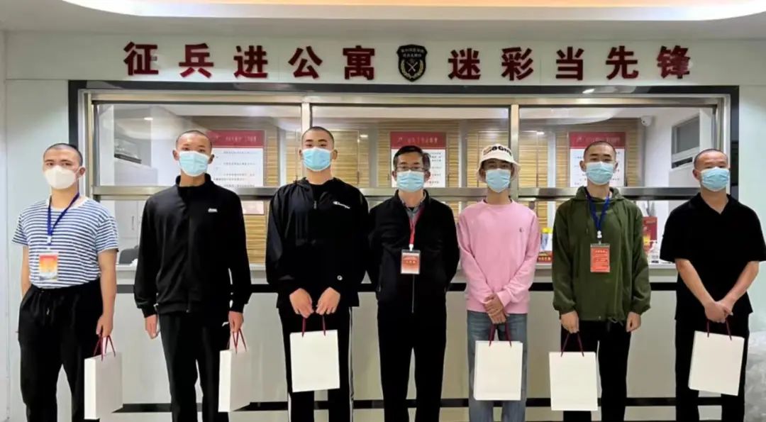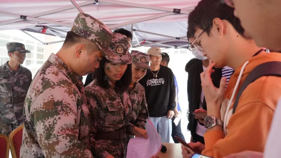 2022年4月,迷彩先锋社组织退伍学生在学校征兵服务站为新兵同志们理发,学工部(武装部)还给新兵同志赠送纪念品。