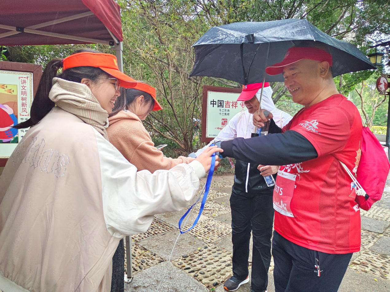 活动开始前,志愿者们便做好了充分的志愿服务准备工作,并在活动前期接受了专门的志愿服务培训。在今天的活动中,志愿者们早上6:30从学校出发,第一时间到达各点位,并从早上8:30一直持续到下午4:30全程跟进,为徒步者在各点位提供志愿服务。志愿者们手中握着打卡器,在打卡处见证着每一位活动参与者坚持不懈的徒步运动,所盖下的章是每一位参与者荣誉的象征,同时尽己所能地帮助各位活动参与者。
