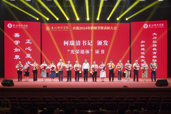 校党委书记柯瑞清代表校党委向受表彰的优秀教师代表表示热烈祝贺,向光荣退休和从事教育工作满三十年的教职工致以崇高的敬意和衷心的感谢,向新入职的教师表示热烈欢迎,向全校教职员工送上节日的问候和诚挚的祝福。他指出,在刚刚召开的全国教育大会上,习近平总书记出席大会并发表重要讲话,代表党中央,向全国广大教师和教育工作者致以节日祝贺和诚挚问候,强调“尊师重教是中华民族的优良传统“进一步加大优秀教师选树表彰和宣传力度,让教师享有崇高社会声望、成为最受社会尊重的职业之一”。习近平总书记的重要讲话精神是我们加强高素质专业化教师队伍建设的根本遵循。
