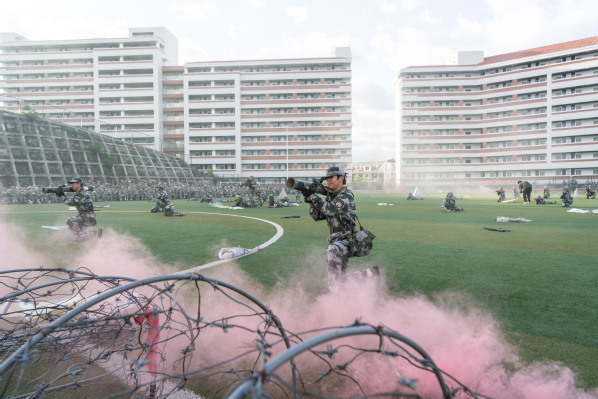 9月22日下午,我校2025级新生军训会操暨总结表彰大会在第二田径运动场举行。
