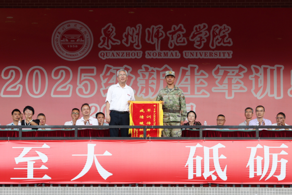 会上,教务处负责人宣读了此次军训评选出的先进集体和个人名单;外国语学院2025级英语(师范)类专业黄晶同学代表军训标兵发言。
