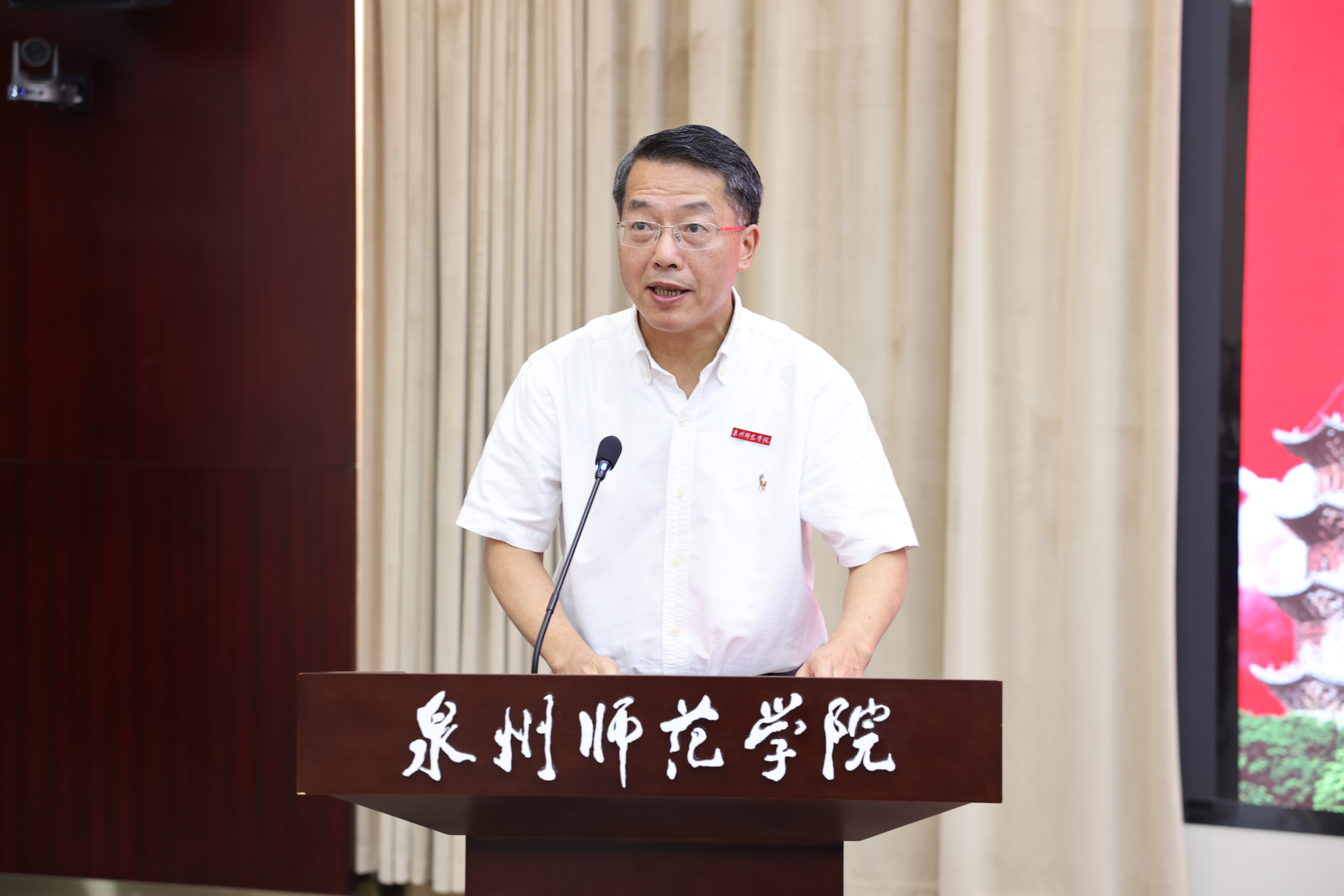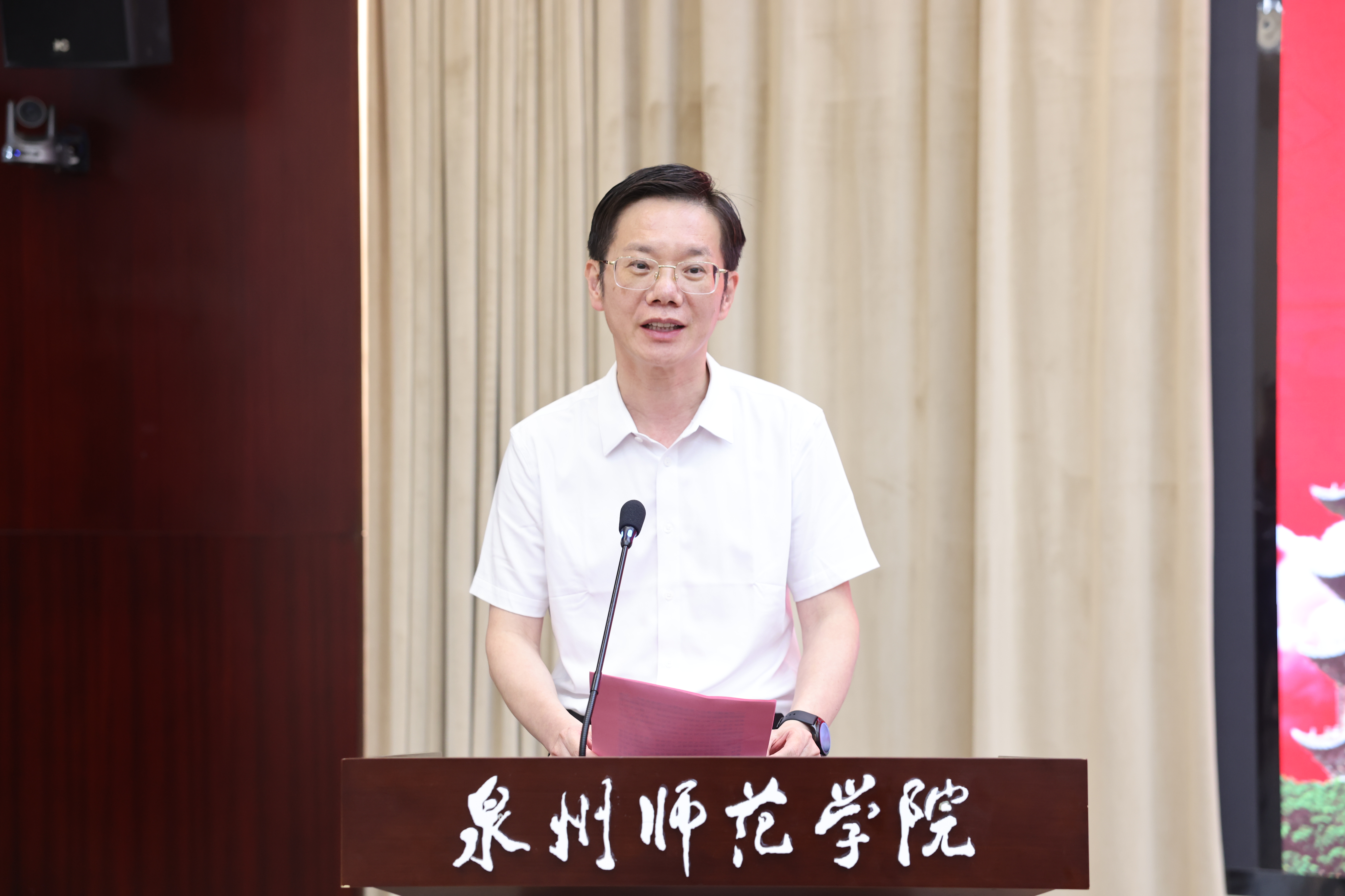 福建省社科联党组成员、专职副主席候选人、秘书长洪金镖,泉州市委常委、宣传部部长、统战部部长刘林霜,泉州市政协原副主席、一级巡视员骆沙鸣,福建省福文化研究院院长马照南,厦门大学国学研究院院长陈支平,福建省闽南文化研究会会长林晓峰,校党委书记柯瑞清、校长陈昌萍、副校长夏侯建兵等出席,学校有关职能部门及二级学院负责人,研究生代表参加仪式。