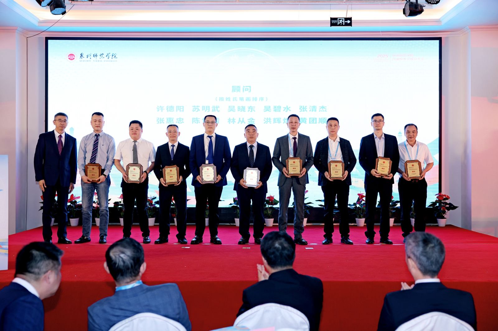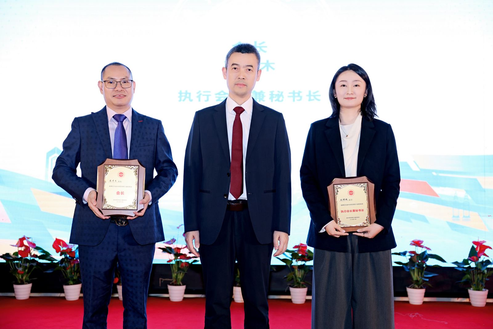 苏才木为当选为常务副会长许祥德、廖桥洋,当选为副会长和森泉、王慧慧、刘与长、吴逸轩、宫传伟、洪火炮、曹博文授牌。