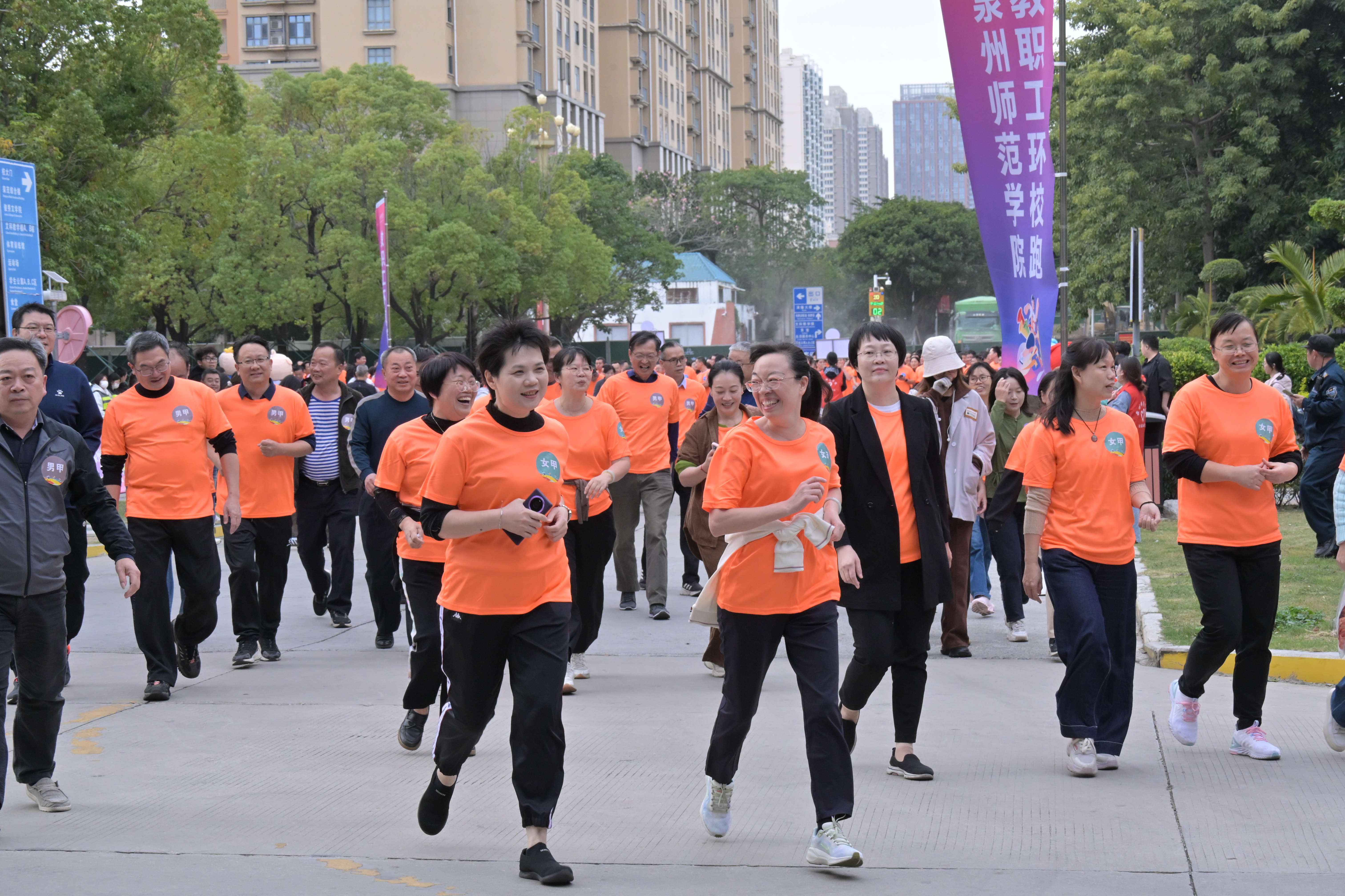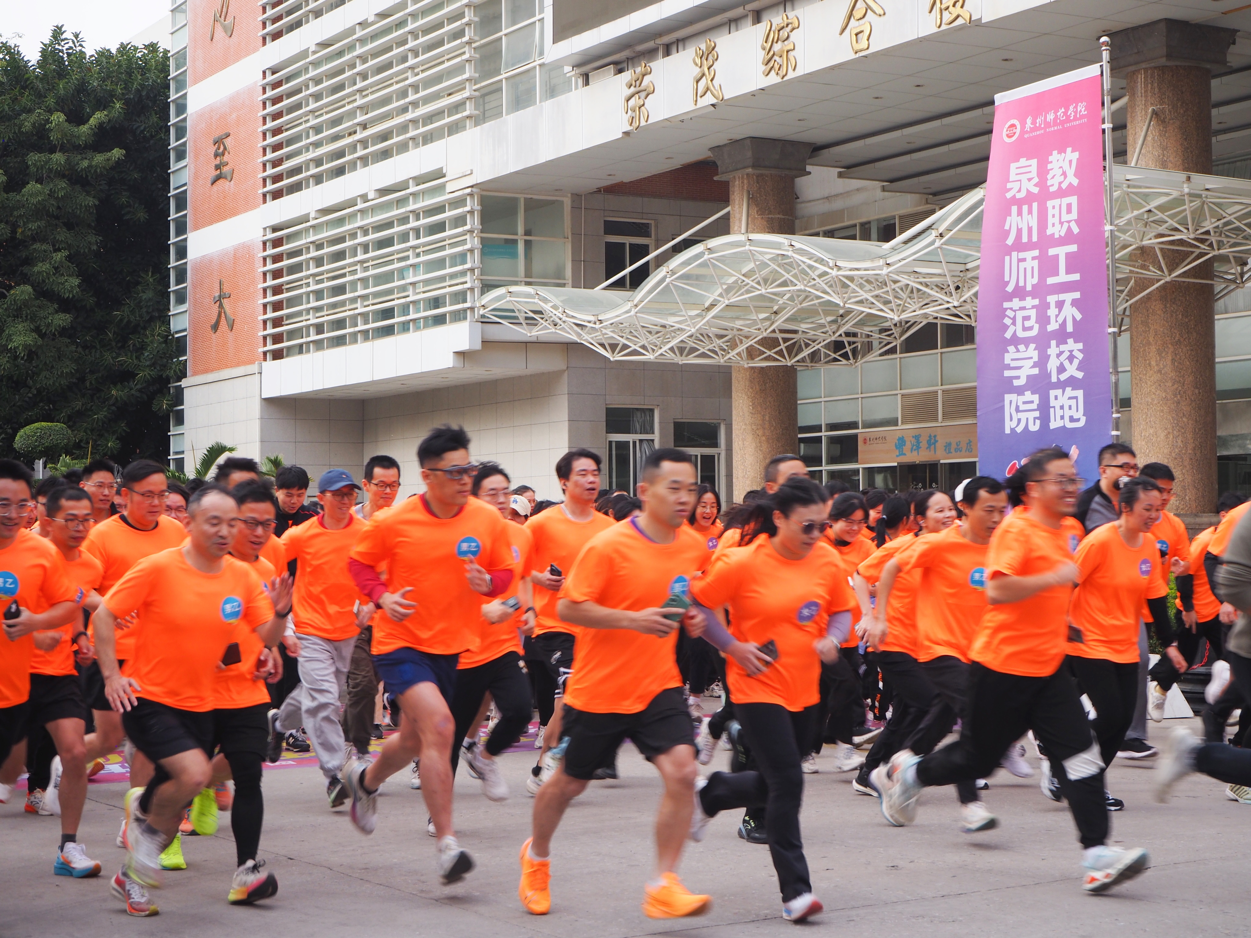 为深入推进“运动校园”“文化校园”建设,倡导健康生活理念,丰富教职工文体生活,营造积极向上、充满活力的校园氛围,我校于11月27日在泉州主校区举行“运动校园、健康同行” 2025年教职工环校跑。本次活动由校工会委员会主办,体育学院、后勤处、保卫处、团委协办,太平洋人寿保险泉州支公司支持,在家校领导与二级工会的800余名教职工参加了活动。
