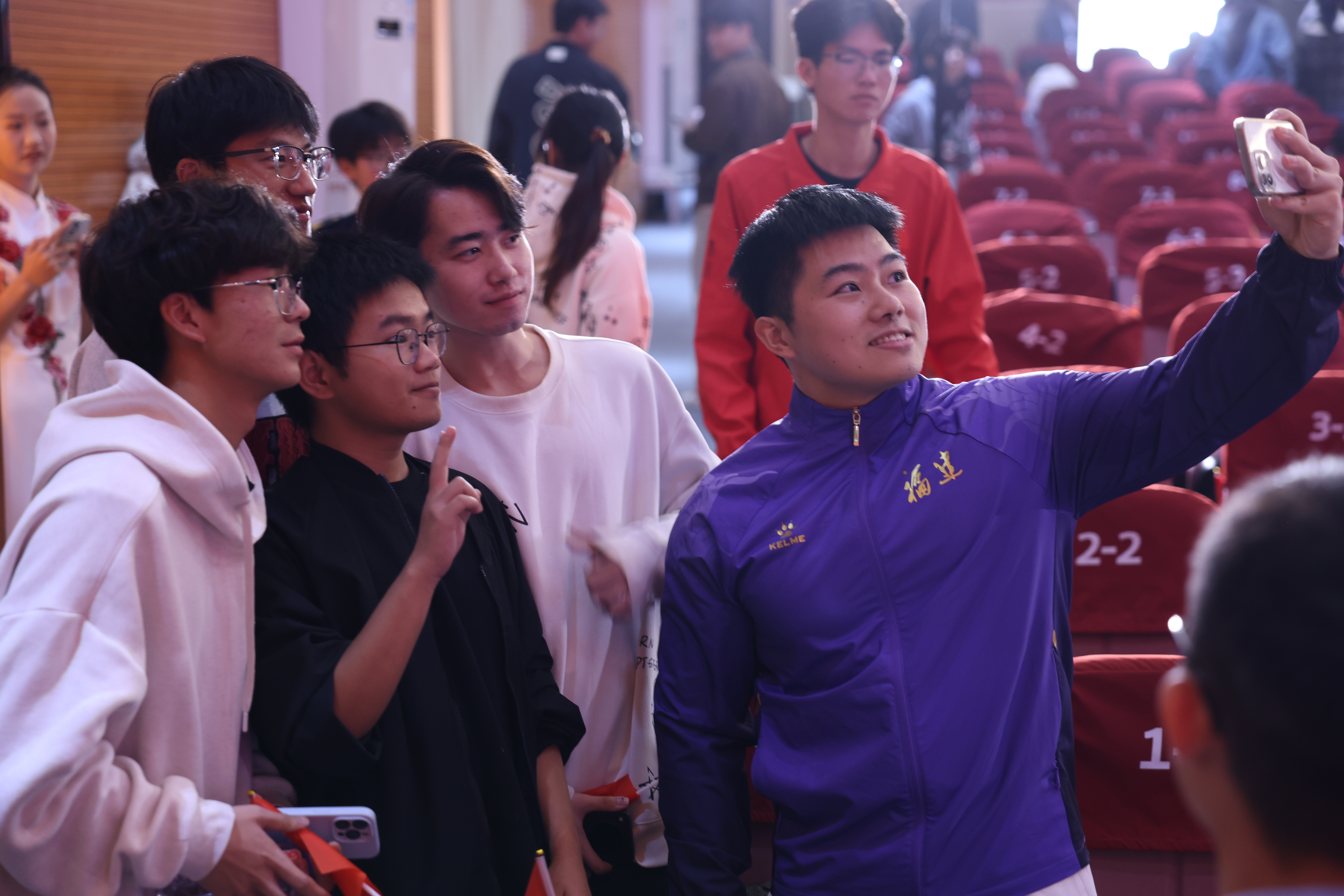 圆桌论坛环节,健儿们围绕“追梦与初心”“突破与超越”“压力管理与生活平衡”等五个篇章,分享了各自与运动结缘的故事、克服瓶颈的心得、缓解压力的方法。李发彬回忆起级别调整从零开始的艰辛,杨静雯讲述了突破自我局限的历程,黄家骏、陈海威等就“超越自己”与“超越对手”的辩证关系展开深入探讨。在互动提问环节,学生代表围绕跨专业学习、地域文化与竞技精神、体育装备升级等话题向健儿们请教,健儿们结合自身经历一一作答,现场交流氛围热烈而深刻。