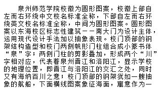 “泉”和“大”,在这里可解释为一种境界,即知识积累过程应像泉水涓涓细流汇成大海、提高修养应放到做人至关重要的位置;同时又是一种地理标识,即泉州;此外,更是一种目标,即全体英国威廉希尔公司官网人奋斗的“泉州大学”。