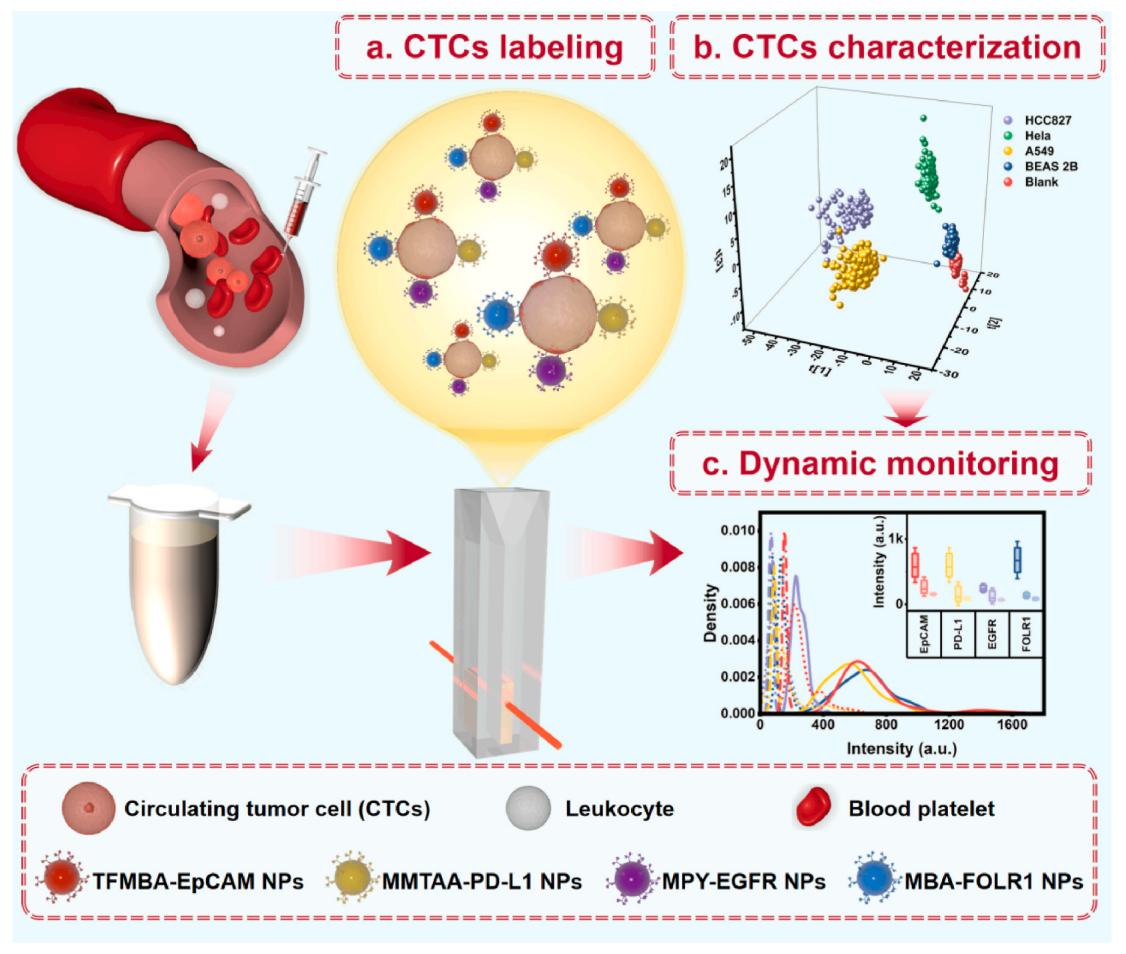 图5. 基于多色编码 SERS 免疫探针的CTC 表型动态监测示意图