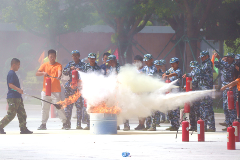 我校开展2019年“消防进军训”灭火和应急疏散演练活动