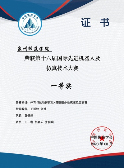 From August 21 to 23, the 16th International Advanced Robotics and Simulation Technology Competition in Taicang was successfully held at Northwestern Polytechnical University. In the Sports and Motion Simulation group, QNU team composed of students from School of Physical Education and School of Maths and Computer Science (Team Captain: Huang Shuting; Team Members: Wang Yirui, Zhang Chengrui, Peng Jiale; Instructors: Wang Yanting, Liu Yun) participated in the competition with the project “Exploring a Healthy Service System to Lead Smart Sports Services”. The team was awarded first prize at the 16th International Advanced Robotics and Simulation Technology Competition.