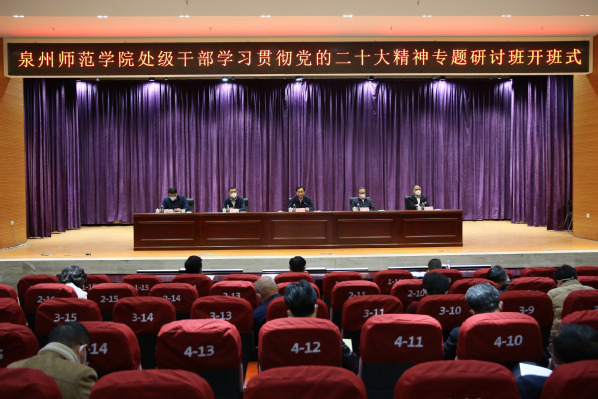 12月22日,我校举行处级干部学习贯彻党的二十大精神专题研讨班开班式。福建省教育系统学习贯彻党的二十大精神领导干部宣讲团成员、泉州市教育系统学习宣传贯彻党的二十大精神宣讲团成员、校党委书记朱世泽教授作主题宣讲报告暨开班式讲话。校党委副书记、校长屈广清主持。校领导林伟、陈亚兵、夏侯建兵出席开班式。