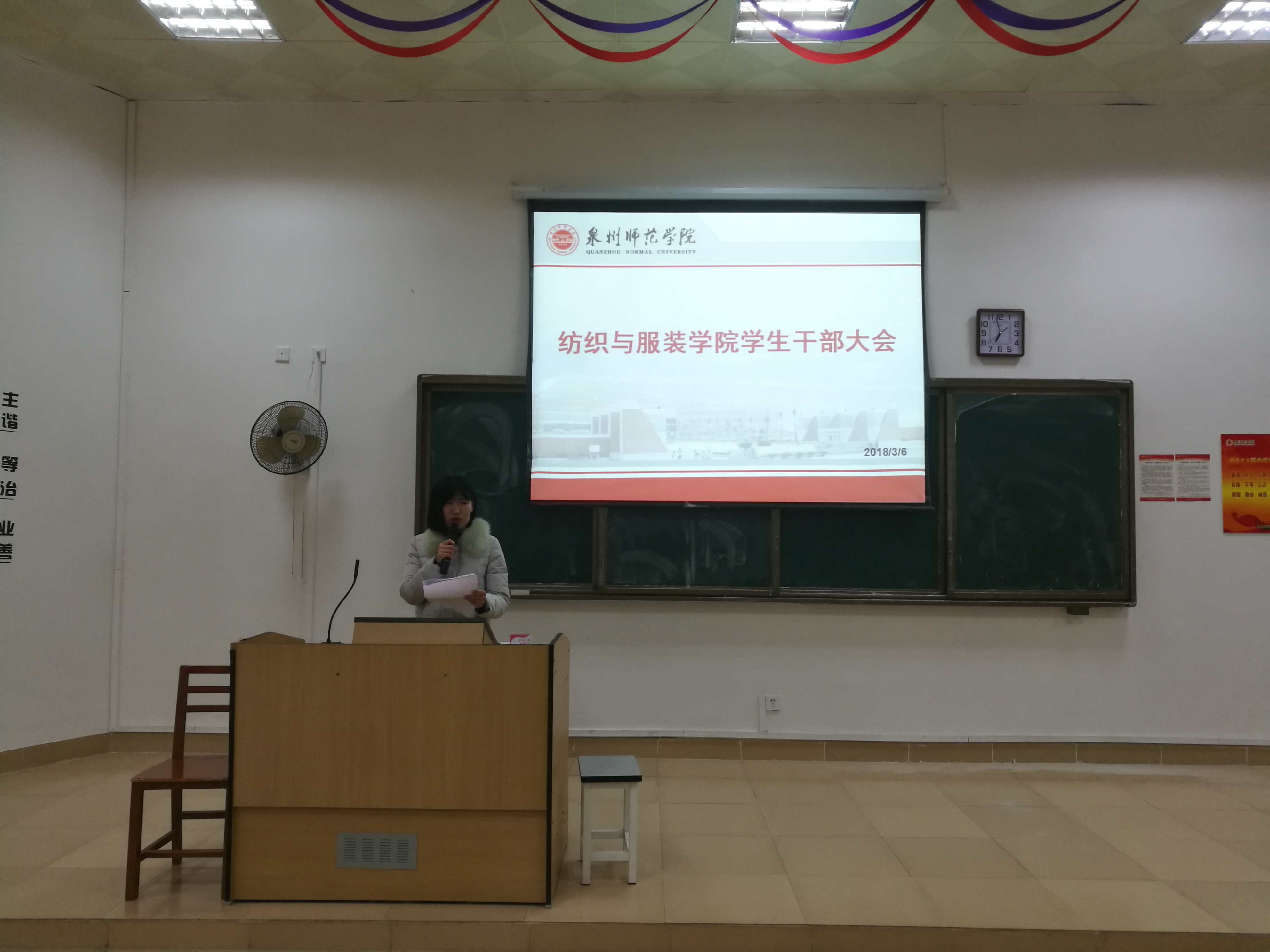 3月6日晚,纺织与服装学院于荣助楼212教室召开新学期学生干部大会。本次大会由学工办副主任、团委副书记聂莹主持,学院辅导员、两委会及班级主干参加会议。