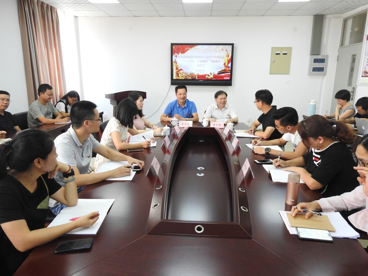 9月19日下午,纺织与服装学院党委组织召开“不忘初心、牢记使命”主题教育动员会,深入贯彻落实全国、全省“不忘初心、牢记使命”主题教育第一批总结暨第二批部署会议重要讲话精神,严格按照中央、省委和校党委对主题教育的部署要求,对学院主题教育进行全面部署。