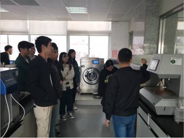 这次企业参观学习让同学们了解了棉质面料、化纤面料常规染整加工工艺流程,将《染整工艺学原理》课程理论知识与实际生产加工知识有机的结合,加深同学们对专业知识的理解,激发同学们探索和求知欲望,同时坚定同学们认真学习专业知识、努力提高专业技能的信念。