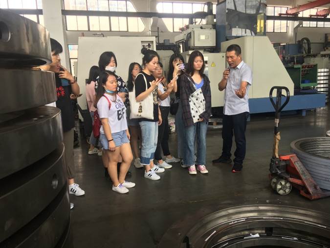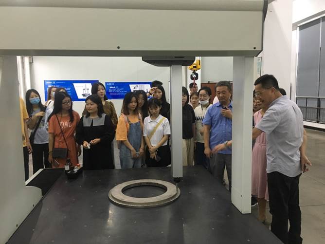 在汤总介绍了公司情况后,公司副总经理薛庆生、总工程师陈瑞元带领师生参观了零件加工车间、装配车间、调试车间、质量检测车间以及职工餐厅、宿舍和运动娱乐区域。宽敞明亮的生产车间,业内一流的加工设备,世界著名的高端产品,加上公司领导耐心详细又通俗易懂的讲解,使同学们看到书本外的新天地。