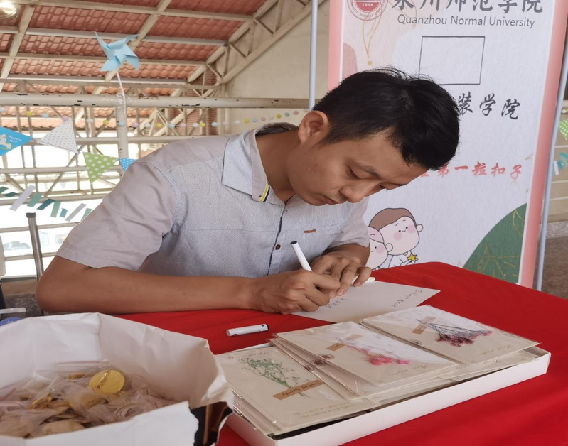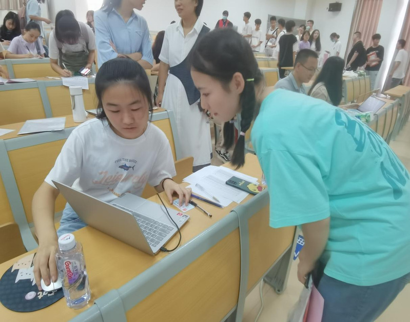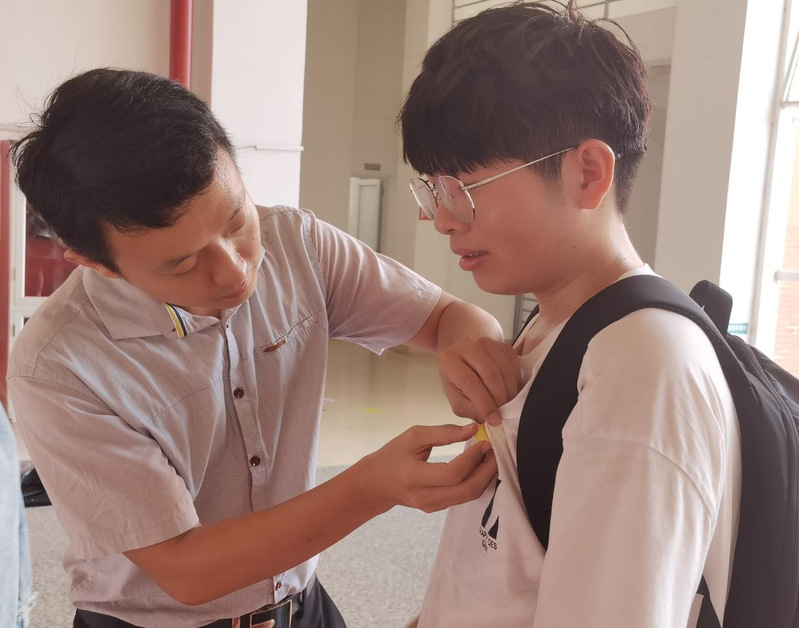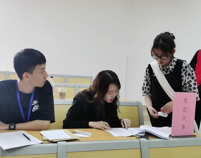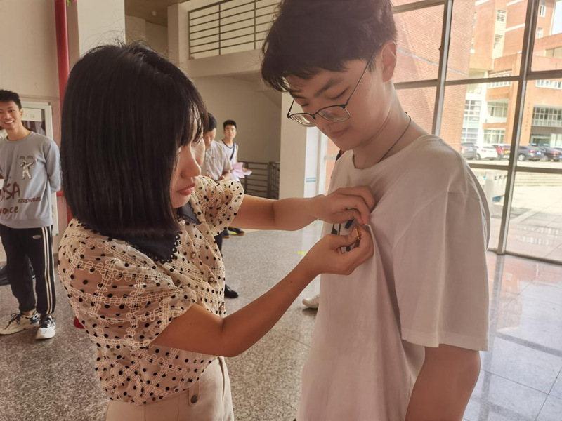 2021新生由志愿者一对一地带入荣助212教室,有序地完成绿色通道办理、档案转交、意外保险办理和电子信息注册等一系列入学流程。办理入学手续后,新生们来到我院的特色迎新区,辅导员为新生扣上象征着大学新生活开始的第一粒扣子,并送上自己书写的大学寄语,希望新生在之后的大学生活中能在辅导员扣好第一粒扣子的带领下,激扬青春,担当使命,扣好后面属于自己的大学“扣子”。