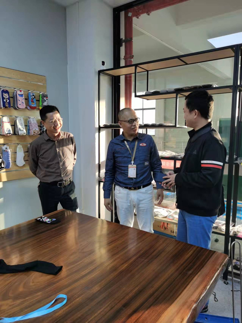 张玉武一行首先参观了福建麦卡隆纺织科技有限公司的产品研发中心、袜子生产车间和成品包装车间等部门,吴显祖董事长逐一进行详细介绍,让访问团一行对麦卡隆的文化背景、发展历史和生产模式等企业基本情况有了初步了解。
