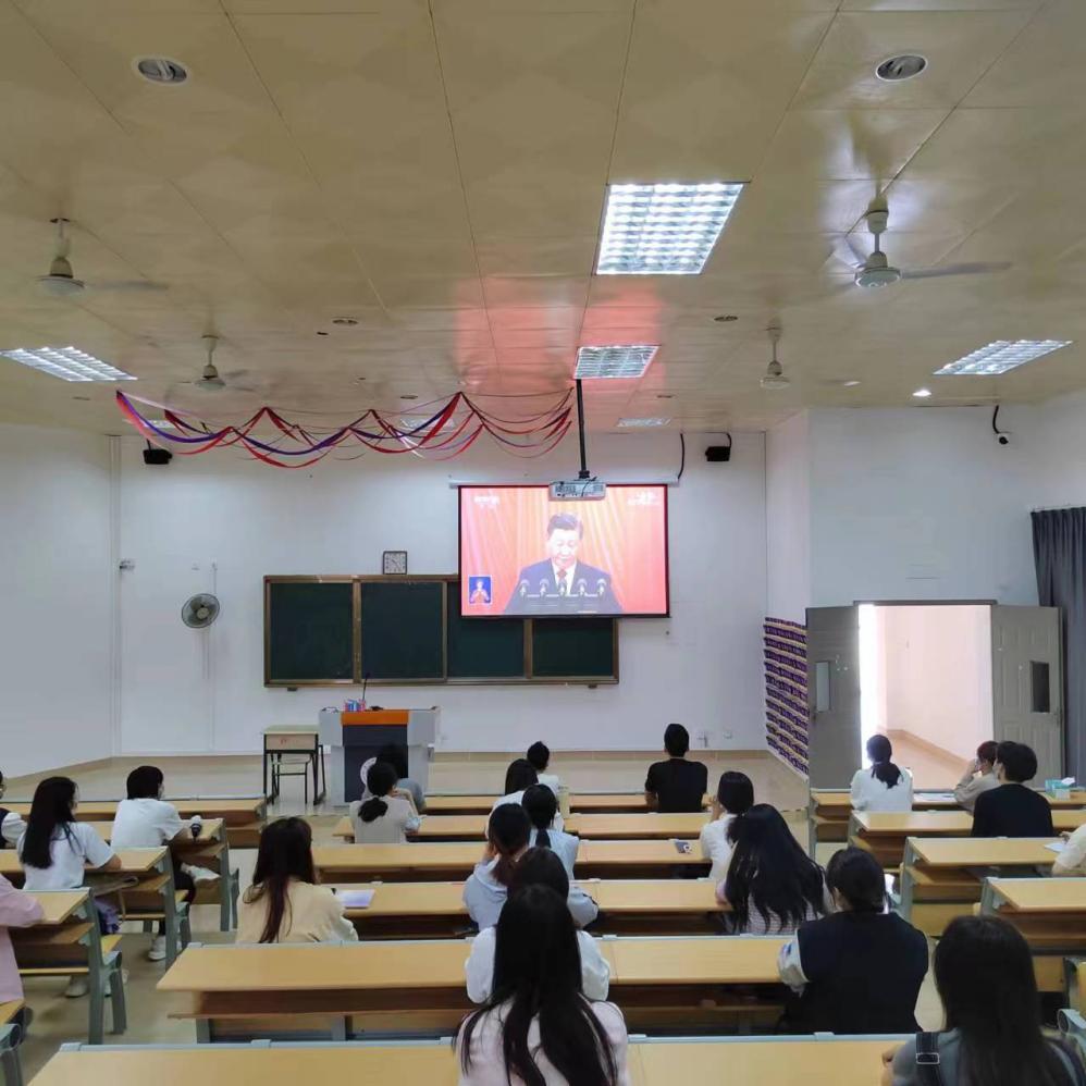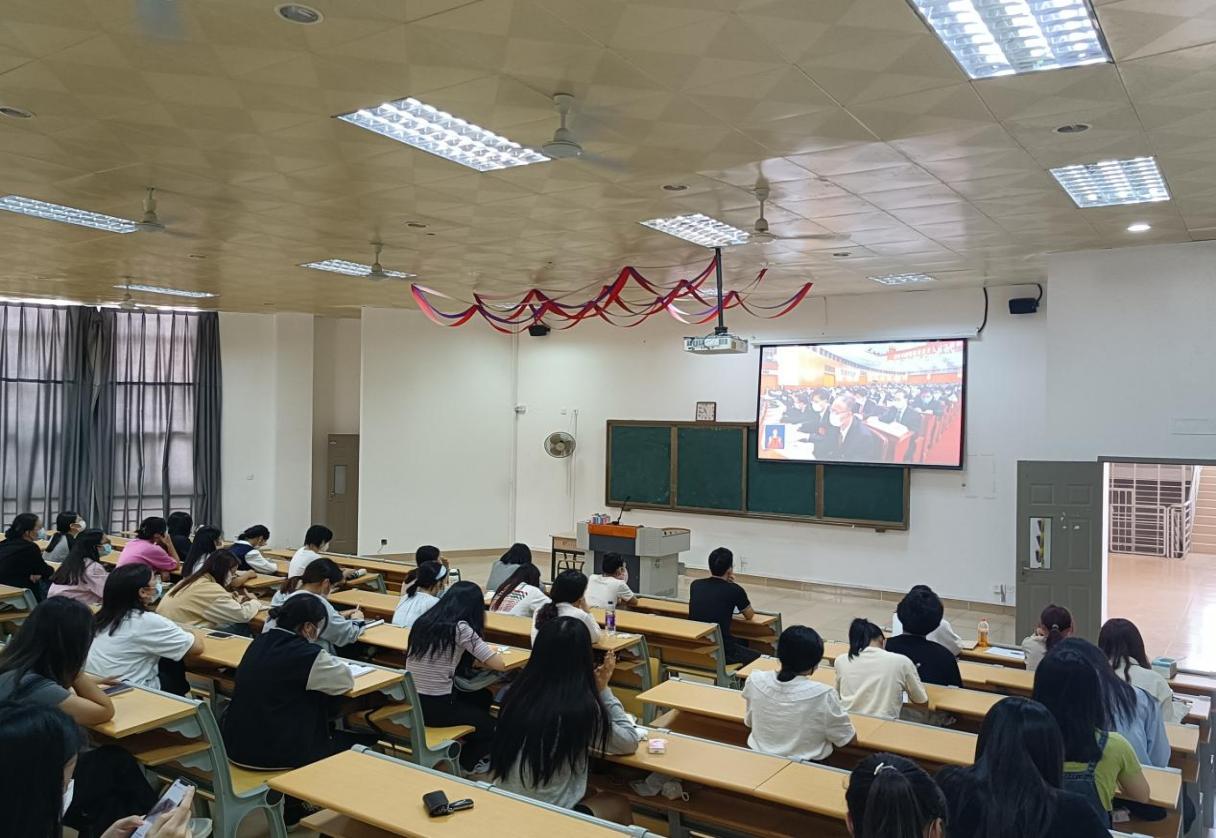 ∆学生党支部全体党员在荣助楼212教室集中收听收看党的二十大开幕会