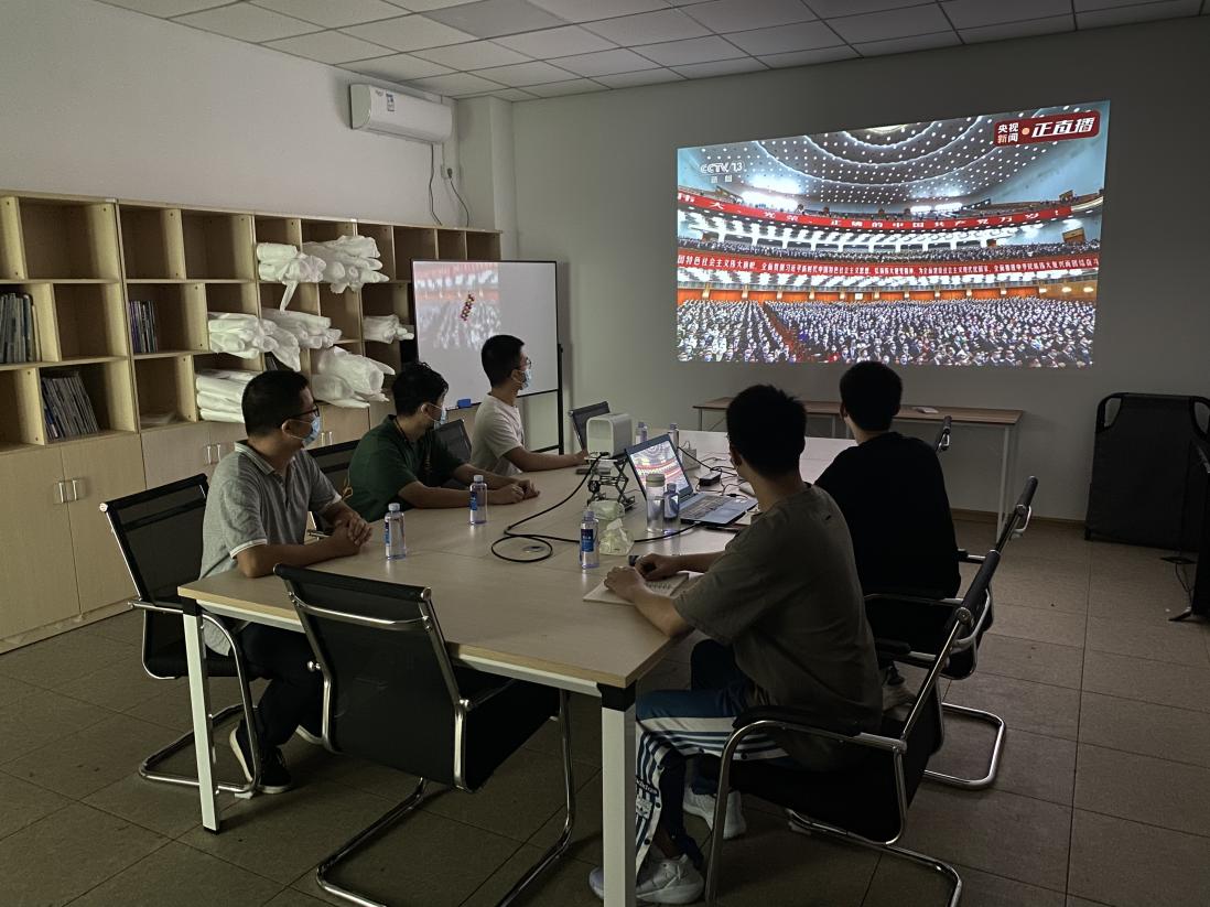 ∆英国威廉希尔公司官网(石狮)生态智能织物工程技术研究院组织科研人员收听收看党的二十大开幕会