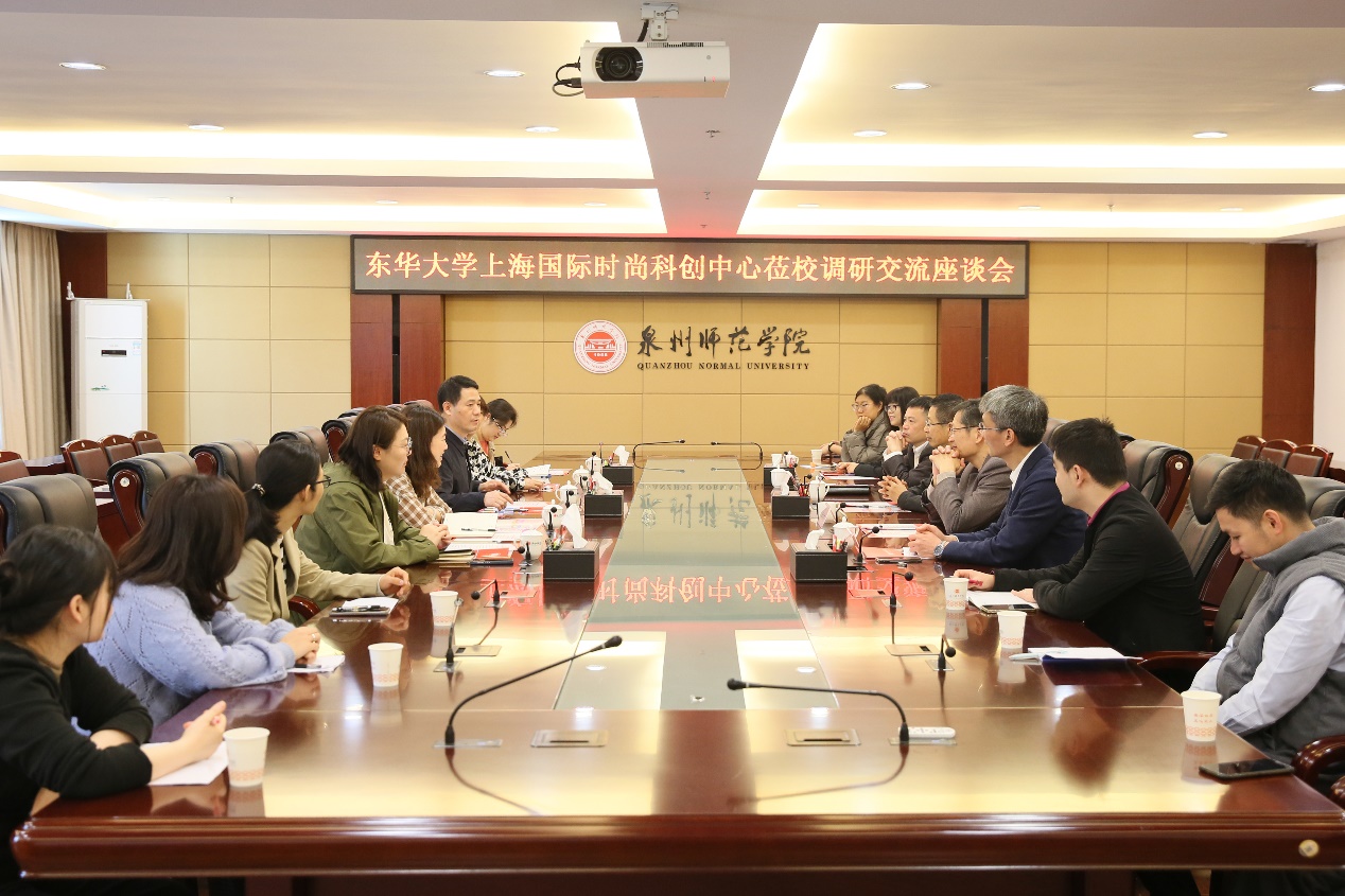 3月17日,教育部长江学者特聘教授、东华大学纺织学院原院长顾伯洪教授,东华大学上海国际时尚科创中心行政副主任沈洁,该中心学科方向带头人郑嵘教授,陈晴副教授等一行5人莅临我校调研交流。校长屈广清,教师工作部(人事处)、科学技术处、实习实训中心负责人,我院党政负责人及教师代表参加。