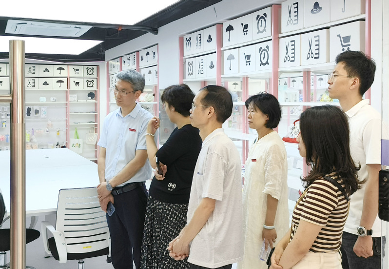 学院一行参观星联中心园区名创优品选品中心、TIKTOK跨境电商直播间、多维玛主题选品展厅、创业者共享会议室等区域,考察鑫诺国际总部办公区、样品室。黄国波介绍了学院人才培养、科学研究、专业建设等情况,希望未来双方加强学生实习实训、毕业生就业、项目研究方面合作力度。李韦萍向师生介绍星联中心主要运营模式,主要是联动各大媒体平台、企业、高校等资源,提供产品展销、直播孵化、海外运营等服务,共同打造产业赋能体系。