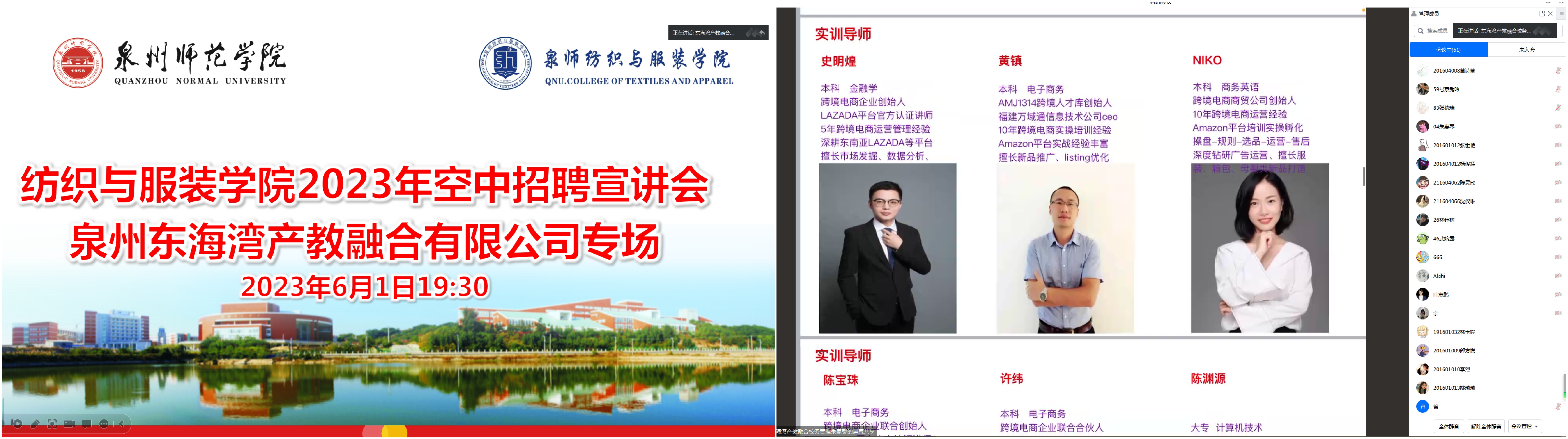 当天晚上,学院举行2023年空中招聘宣讲会·东海湾产教融合实训基地专场。会上,企业人力资源部门负责人就单位概况、就业形势、工作岗位、相关待遇等方面进行了详细介绍,同学们认真听讲,积极互动提出疑问。