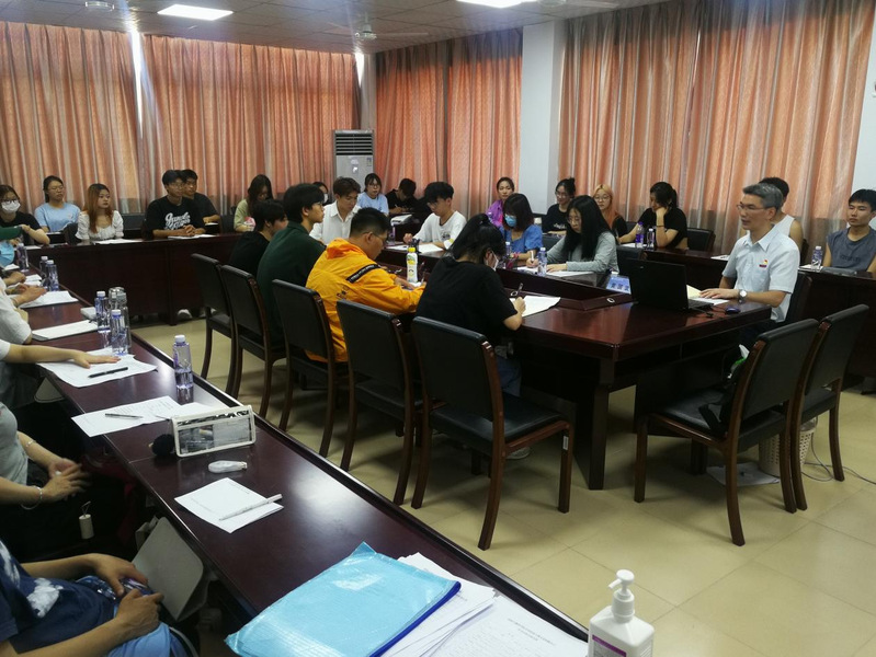 6月1日下午,纺织与服装学院党委书记黄国波在爱约楼701会议室为学院分党校入党积极分子学习贯彻习近平新时代中国特色社会主义思想培训班学员讲授专题党课。