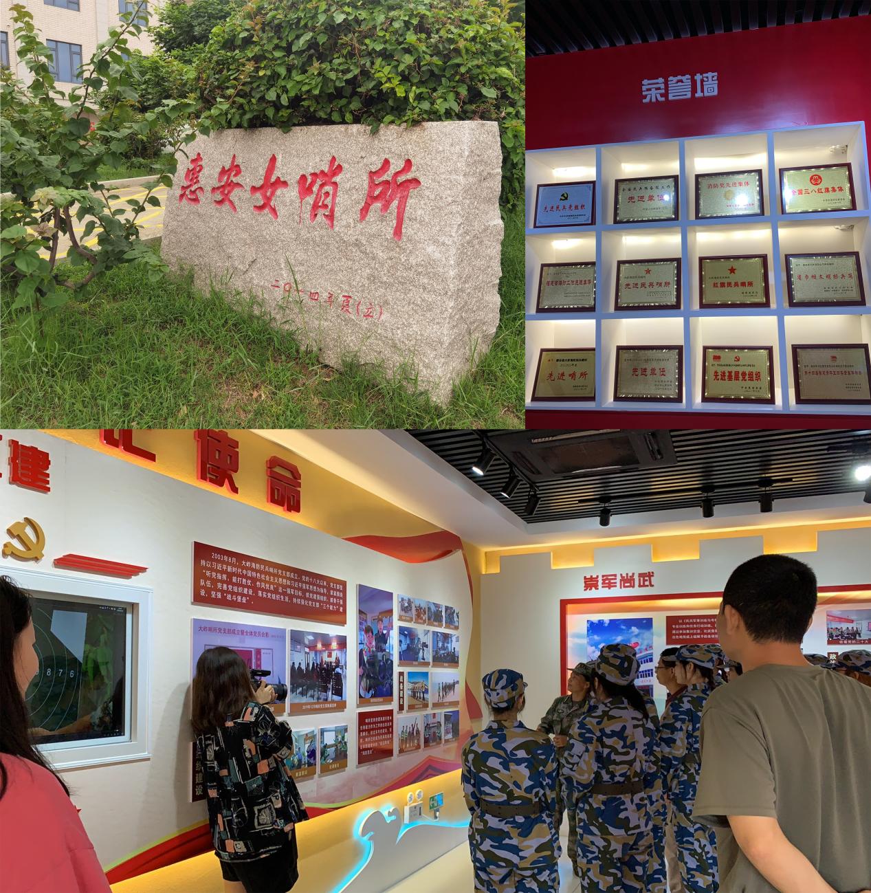 小分队到达惠安女民兵哨所时,受到该哨所民兵班长的热情欢迎。班长随即带领师生们进入哨所展馆,向援疆小分队讲解了惠安女民兵哨所创办的历史进程、职责、军事训练情况以及该哨所所获得的各种荣誉。惠安县崇武镇大岞海防女子民兵哨所成立于1956年,哨所所处的虎豹关位于崇武半岛沿海最东的突出地,东距台湾本岛仅97海里,北距台湾管辖的乌丘岛27海里,是历代的兵家必争之地。在党组织领导下,惠安女民兵曾经抓住过企图登陆破坏的美蒋特务和偷渡罪犯,多次荣立战功,获得中央军委、福建省军区等上级机关的表彰,以其飒爽英姿诠释着新“惠女精神”,被誉为“新一代红色娘子军”。正如毛泽东同志的诗作《为女民兵题照》里所写的那样,“飒爽英姿五尺枪,曙光初照演兵场,中华儿女多奇志,不爱红装爱武装”,她们有着不甘人后的志气,勇争一流的豪气和敢试敢闯的锐气,是当之无愧的巾帼英雄。