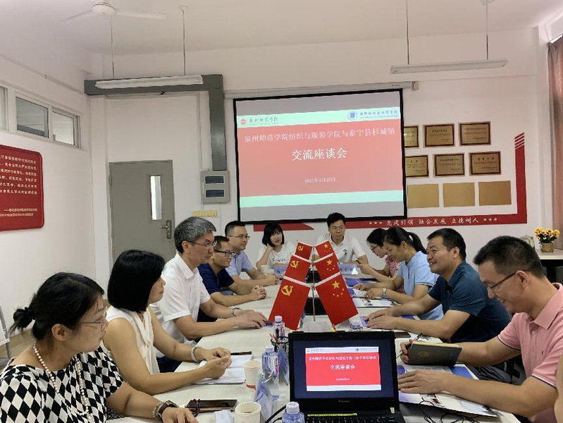 8月23日下午,泰宁县杉城镇党委书记严荣焱带队到纺织与服装学院考察交流,学院党委书记黄国波、副院长徐海燕热情接待来访客人,双方在学院党建工作室举行座谈交流会。学校党委保卫部部长戴锋、党政办副主任常飞云,杉城镇人民政府人大主席刘萍、副镇长施健、妇联主席邓玲莹,纺织与服装学院党政办主任李斌、学工办主任聂莹、党政办副主任任自佳及辅导员代表等参加座谈。