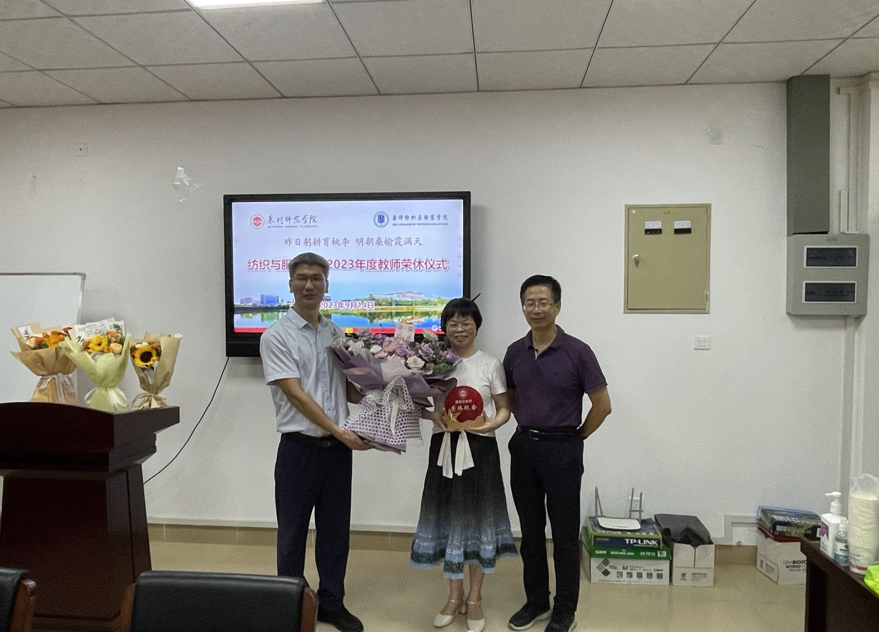 9月14日下午,纺织与服装学院在王爱约楼 701会议室举行了一场简朴而温馨的退休教师荣休仪式,全体学院领导,各系(办、中心)负责人,交通与航海学院老同事代表,服装设计与工程系教师代表,校友代表,学生代表参加荣休仪式。党委书记黄国波主持仪式。