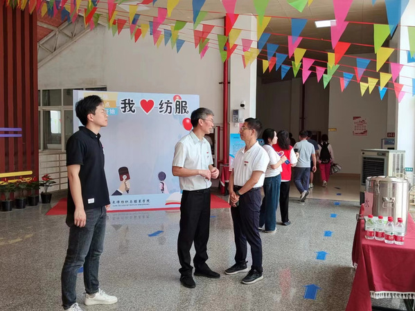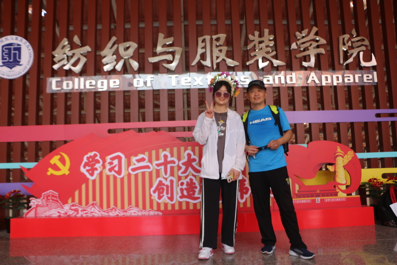 二是“我来‘纺服’打个卡”。照片是留住时光最好的方式,学院定制“我爱纺服”“心怀梦想,扬帆起航”“我是纺服人”等各式展板,妙趣横生,吸引新生及家长不断驻足拍照打卡。通过照片将青春的注脚在这一刻定格,希望同学们怀揣着赤诚之心,谱写大学生涯新篇章。