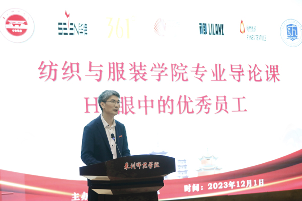 12月1日晚上,纺织与服装学院在特教大楼第一学术报告厅开展纺织服装专业导论课“HR眼中的优秀员工”,来自纺织鞋服产业著名企业的五位人力资源经理为2023级新生联合授课。东华大学研究生院副院长刘晓艳教授,学校实习实训中心副主任邓秀勤,学院党委书记黄国波、副院长徐海燕,系主任、教师代表,全体辅导员,2023级研究生、本科生参加。黄国波客串“助教”,主持这堂特殊的专业导论课。