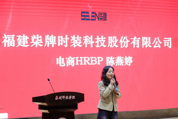 柒牌公司HRBP陈燕婷以“走进柒牌,初识电商”为主题进行授课,通过柒牌是谁、柒牌电商初了解、HR眼中的优秀应届生三个部分的讲授,让同学们了解与专业相关的岗位设置与需求。陈燕婷还对职场新人进入公司后的职业发展路径进行详细解读和梳理,向同学们建议要注重实践经验的积累,提升沟通表达、总结反馈能力。