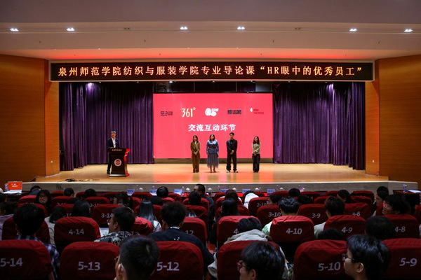 当天授课的企业HR有福建柒牌时装科技股份有限公司电商HRBP陈燕婷、三六一度(中国)有限公司招聘副经理洪德鸿、厦门贝贝怡婴童用品有限公司人力经理夏娜、利郎(中国)有限公司招聘培训经理陈燕红、福建凤竹纺织科技股份有限公司人事行政部经理胡志吉。黄国波向各位嘉宾、教师代表表示热烈欢迎和衷心感谢。他希望同学们能珍惜此次宝贵的学习机会,借助企业HR的角度进一步认识纺织鞋服产业发展前景,理解本专业的内涵特点、技术发展动向以及就业形势,更好地把握行业、企业、职业和专业之间的紧密联系。