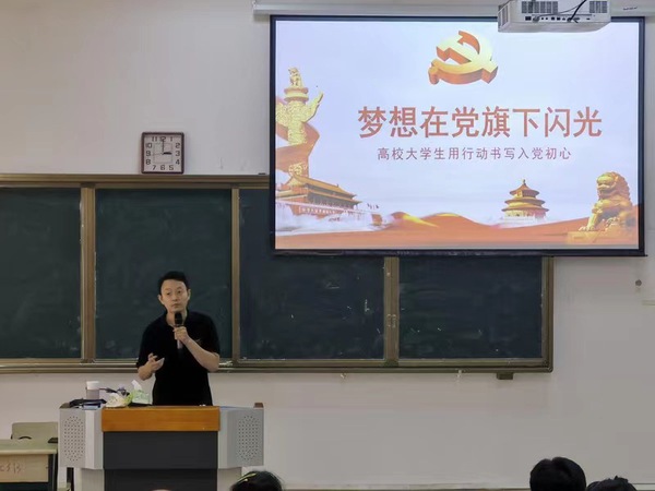 专职组织员程钟洛围绕“梦想在党旗下闪光”的主题,从中国共产党的发展历史、端正大学生入党动机、从榜样身上汲取力量及以实际行动争取入党等四个方面的内容,带领同学们深入学习建党故事,解码伟人精神,引导同学们要学习、掌握党的光辉历程,向革命先辈学习,树立崇高理想,肩负时代责任。此外,程钟洛还讲授了“马克思主义宗教观教育”和“珍惜读研机会,实现美好理想”等主题团课。