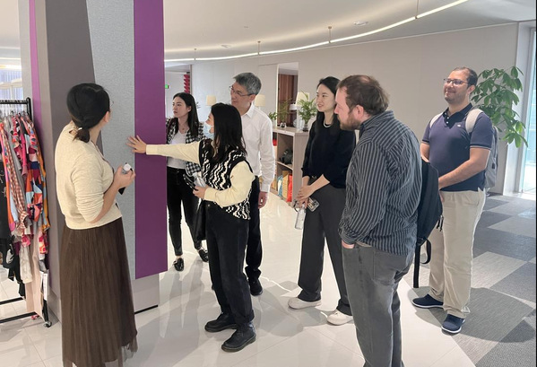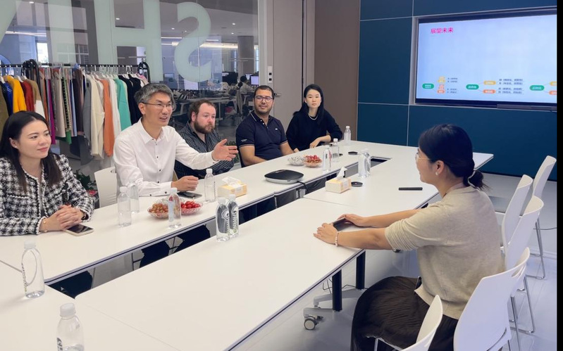 学院一行来到福建新时颖有限公司,在公司副总监蒋佳鸣的陪同下,参观了公司产品展厅、技术研发中心、工艺车间和服装生产车间,深入实地考察企业员工生产生活条件,了解公司发展历程、企业文化和岗位需求。参观期间,双方就校外实习实践基地、学生实习就业等相关事宜进行交流。