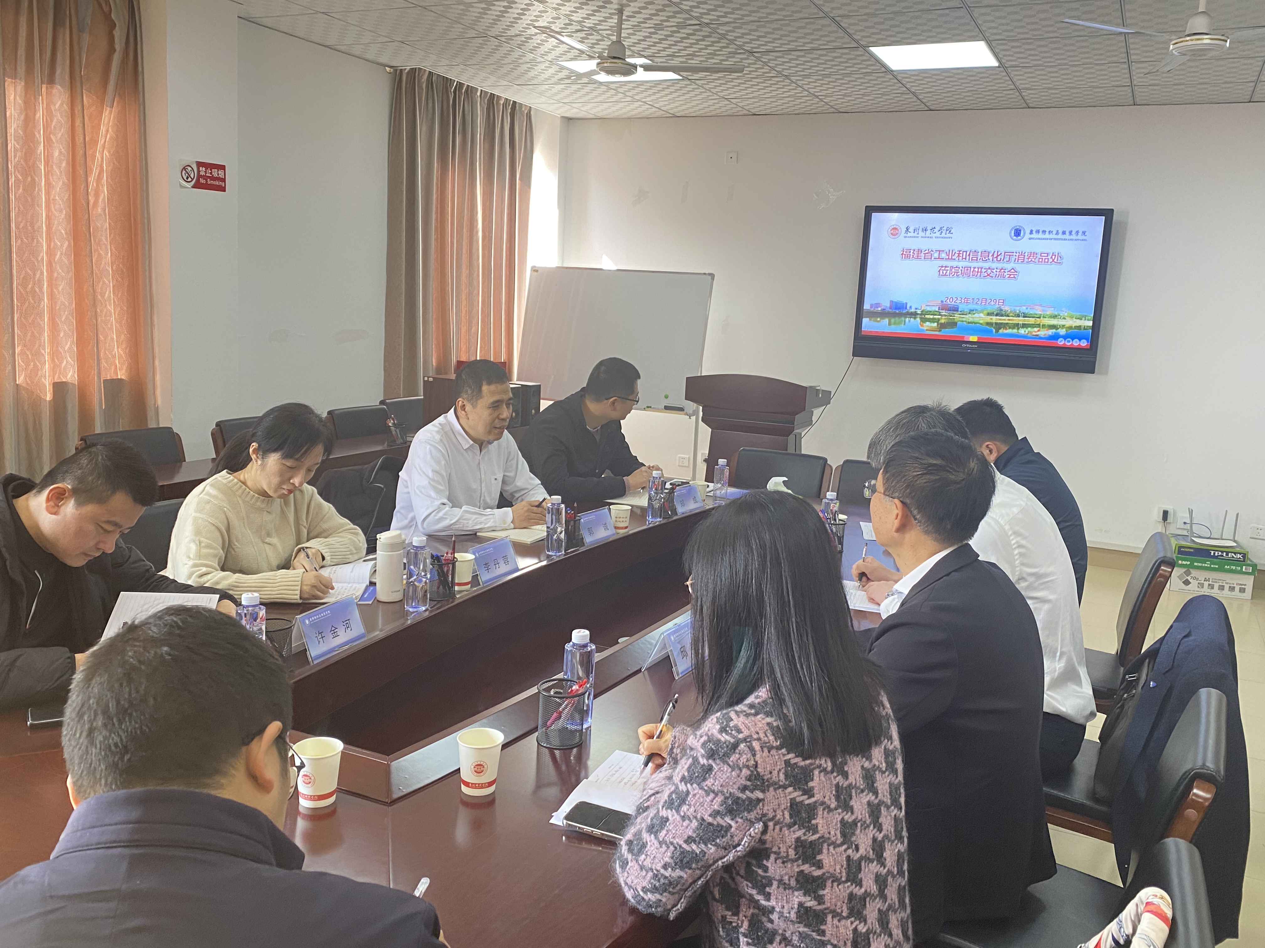 夏侯建兵对郭诚一行表示热烈欢迎,感谢省工业和信息化厅一直以来对学院办学给予的大力支持,并介绍学校纺织鞋服创新研发、科技成果、产业合作、平台建设等方面情况。