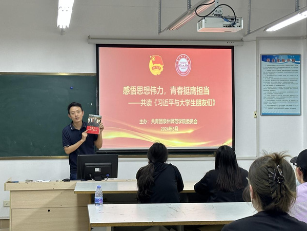 辅导员李晓希提到,《习近平与大学生朋友们》是一本记录习近平同志与大学生朋友们交流互动的书籍。通过这本书,同学们可以更深入地了解习近平同志的治国理念、人生观点以及对青年一代的殷切期望。她鼓励同学们要坚定理想信念、勤奋学习、勇于实践、担当起时代责任,为实现中华民族伟大复兴的中国梦贡献自己的力量。