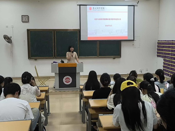6月13日下午,纺织与服装学院各专业分别于理工218与荣助梯教212召开期末温书迎考动员大会,各系主任、辅导员及全体学生参加。