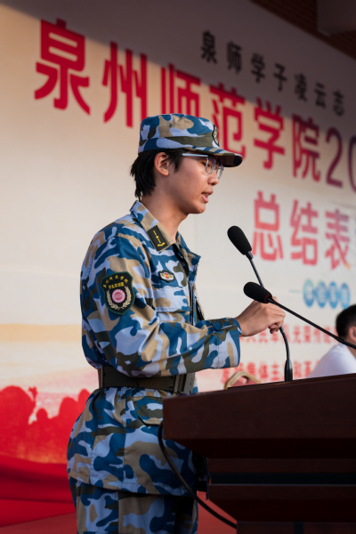 2024级服装与服饰设计专业刘志方同学代表军训标兵发言
