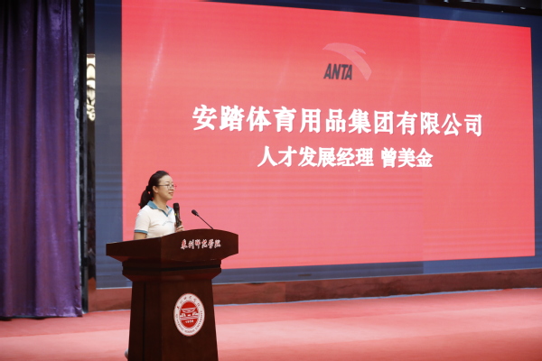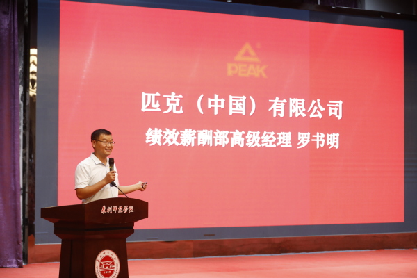 当天授课的企业HR、高管有安踏体育用品集团有限公司人才发展经理曾美金、福建百宏聚纤科技实业有限公司培训主管林程云、泉州沧海品牌运营有限公司创始人汪慈涵、特步(中国)有限公司街头设计副总监黄剑雄、匹克(中国)有限公司绩效薪酬部高级经理罗书明。聂莹向各位嘉宾、教师代表表示热烈欢迎和衷心感谢。