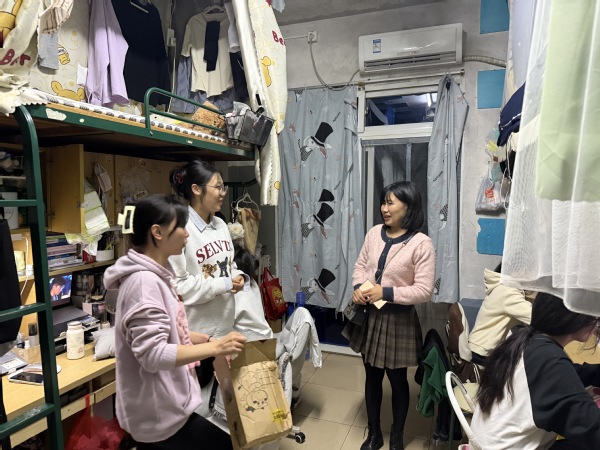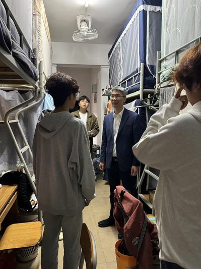 在与学生交流的过程中,老师们不忘叮嘱学生注意保暖,要根据温度的变化适时增添衣物。同时,各位老师还强调了个人卫生的重要性,提醒学生们要养成良好的卫生习惯,保持宿舍的清洁与整洁,共同营造一个健康、舒适的生活环境。通过这次走访,学院进一步深入调查学生情况,收集学生的意见和建议,面对面了解学生学习、生活中的难题、困扰,现场具体讨论解决学生急难愁盼问题。