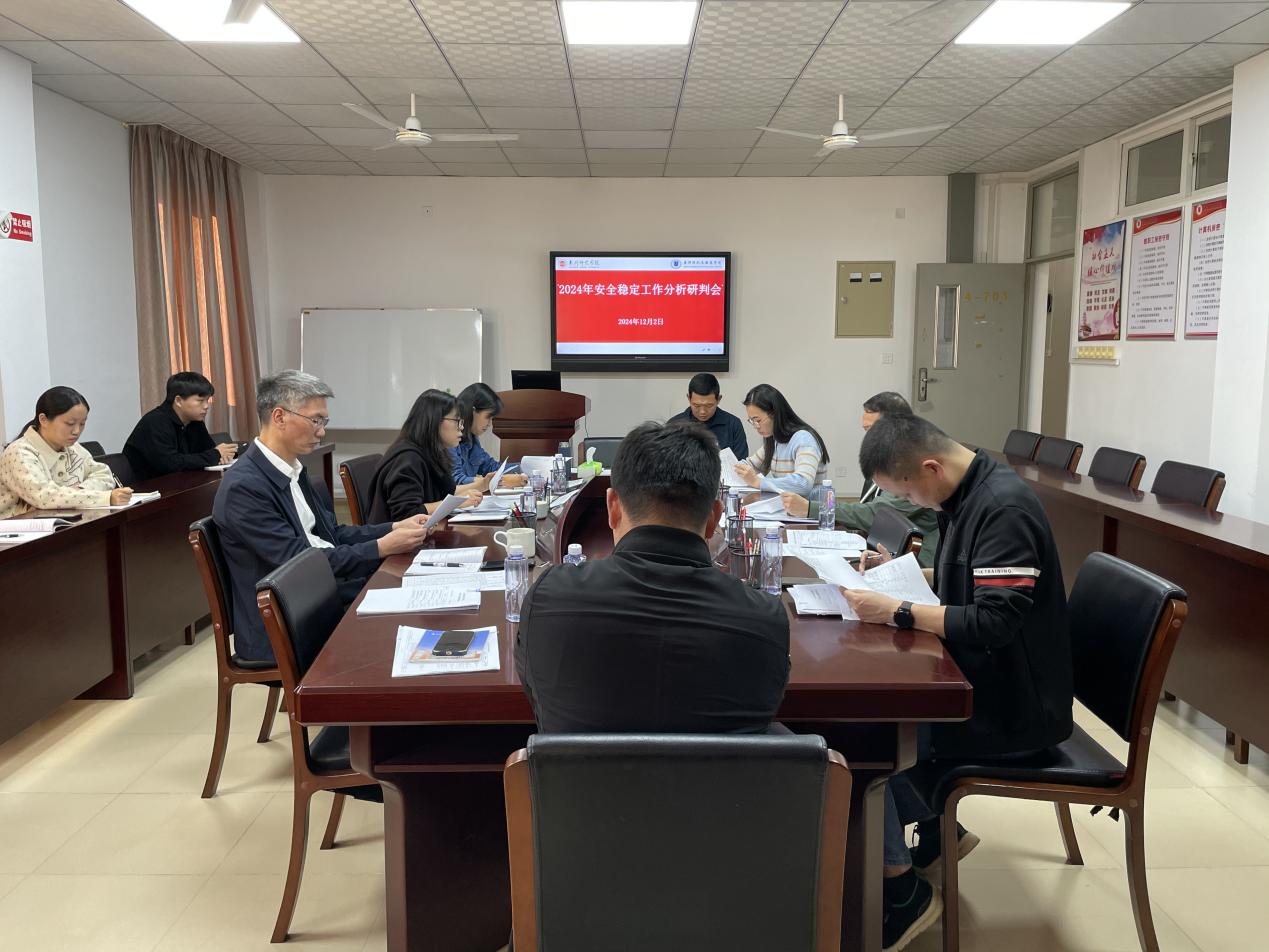 12月2日下午,纺织与服装学院在王爱约楼701会议室召开2024年安全稳定工作分析研判会,学院党委书记黄国波、副院长(主持工作)崔丽娜、副院长徐海燕,各系(办、中心)负责人,全体辅导员,实验中心全体工作人员参加。会议由崔丽娜主持。