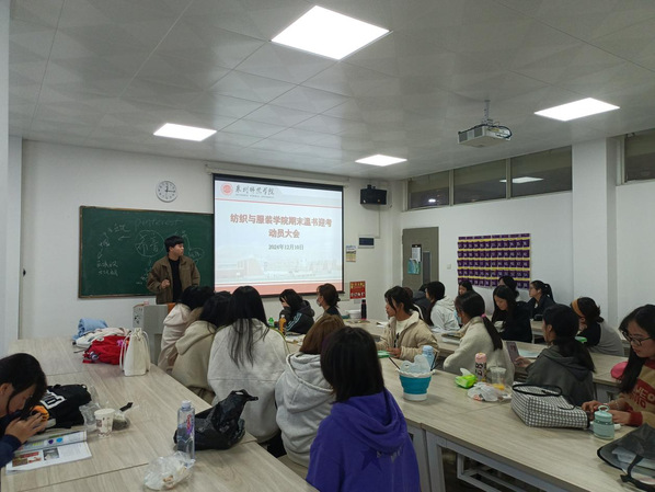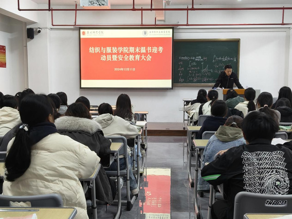 临近期末,为了营造良好的学习氛围,提高同学们的学习积极性,同时加强安全教育,增强同学们的安全意识,纺织与服装学院于12月6日-12月19日开展期末温书迎考动员暨安全教育大会。辅导员及全体学生参加。