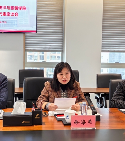 学院副院长徐海燕介绍学院近年来在学科建设、人才培养、科学研究、社会服务等方面的办学成绩。她表示,学院契合区域纺织服装行业形成了鲜明的办学特色和优势,这是广大师生和校友长期不懈、共同努力的结果。