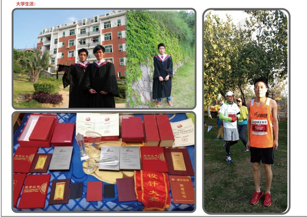 △丘马金荣大学期间参加比赛的奖状以及活动照片