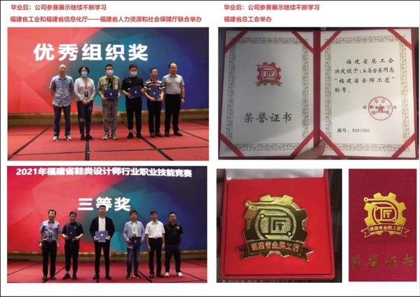 丘马金荣还记得第一次踏入校门时,闽南红砖墙的建筑传统元素映入眼帘,红白相间,赋予了母校建筑浓厚的地域特色,给人留下了深刻的印象。那时的他怀揣着对知识的渴望和对未来的迷茫踏入校园,是母校为他点亮了求学的方向。图书馆的晨光、自习室的灯火……这些片段拼凑成青春的底色,让他懂得求学不仅是知识的积累,更是心智的磨砺。大一期间,他开始适应新的学习环境和生活方式,包括独立生活、时间管理和自我约束,初步接触专业领域,了解专业的基本概念和发展方向,参加了青年志愿者协会和电影协会等相关社团活动,丰富课余生活,培养社交能力。大二起,他开始深入探索专业课程,经常去图书馆看书学习,积极参加各项比赛,提升专业能力和创新思维。积极参与实习,积累工作经验,了解行业动态和职业要求。获“真皮标志•新濠畔杯”中国鞋类设计大赛“金奖”;“创意重庆”工业设计大赛“西部鞋都杯”鞋类产品设计赛“银奖”;“海峡杯”工业设计大赛优秀奖;首届中国设计大展”作品“《仿生系列设计》系列作品入选“首届中国设计大展”等。