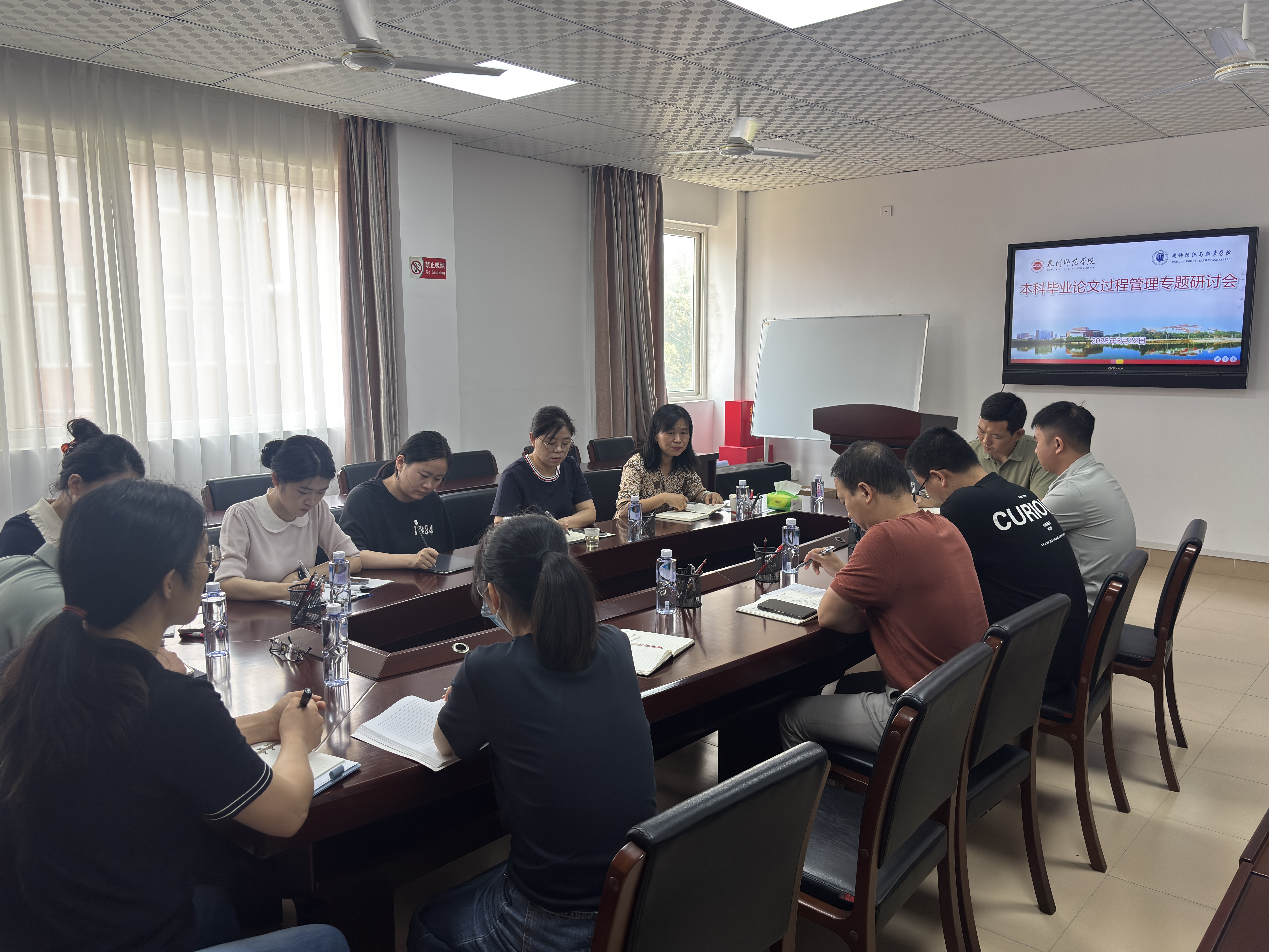 为进一步提高人才培养质量及本科毕业论文(设计)质量水平, 5月22日上午,学院召开本科毕业论文(设计)管理工作专题研讨会。学院领导,各系主任、教学秘书,教学科研办公室成员、学生工作办公室代表及教师代表参加会议。会议由徐海燕副院长主持。
