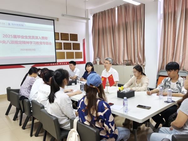 6月19日,纺织与服装学院在王爱约实验楼党建工作室召开2025届毕业生党员深入贯彻中央八项规定精神学习教育专题会,为即将踏上工作岗位的毕业生党员上了一堂深刻的党性党风党纪“行前课”。学院党委书记黄国波,党委委员聂莹、各党支部书记及毕业生党员参加了会议。