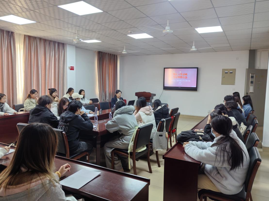 1月8日下午,纺织与服装学院副院长(主持工作)崔丽娜在王爱约楼701为2025年秋季入党积极分子培训班学员暨“青年马克思主义者培养工程”大学生骨干讲授专题党课。