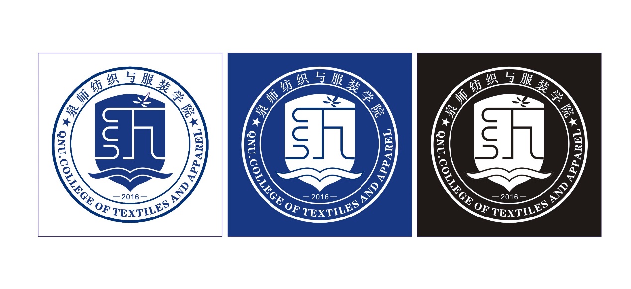 纺织与服装学院院徽为圆形图案,上下部环绕中英文对照的校缩写、院标准全称。图案灵感由“纺”字变形而来,细的线条表达学习应一丝不苟方能有所作为;纺字的左侧,由三本书籍的形态象征纺织、服工、服设三个专业支撑互助;右侧地平线上盛开着刺桐花,象征着纺织服装应用型人才队伍就像刺桐花般在闽南大地上绽放。书本的图形绘制成波浪形态,象征着学子们在知识的海洋中翱翔,代表“文”的一面;盾牌造型代表学子们爱拼敢赢“武”的一面;书本和盾牌倒置状态下形似衣架和熨斗,充分突出本学院理论与实践交相辉映的专业特色。标准色为(C:100 M:80 Y:0 K:0),象征着我院海纳百川、放眼世界,沿着海上丝绸之路扬帆起航。